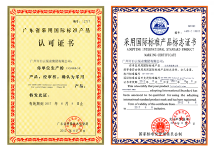 广东省采用国际标准产品认可证书