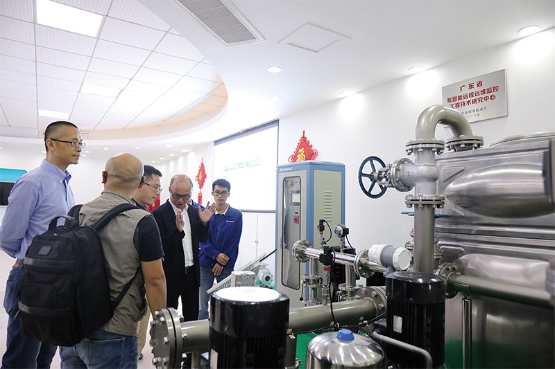 2018年10月17日,广州市工信委两化融合处副处长王宇同到我司考察调研,集团董事孙建云、技术中心总经理杨光、集团主任周庆平予以了热情接待及陪同。孙建云董事首先带领王副处长参观了样品展厅,详细介绍了公司的制造能力、工艺流程和自动化水平。在参观我司最近研发的智能远程供水设备时,王宇同副处长饶有兴趣的向技术人员询问并亲自演示了每一个环节,详细了解了公司产品的智能化功能模块。