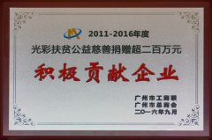 2016年10月15日,由广州市工商联、广州市总商会共同举办的“2011-2016年度光彩扶贫公益慈善”颁奖仪式在广州市东方宾馆国际会议中心隆重举行