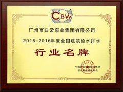 焦点娱乐:集团荣获2015-2016年度“全国建筑给水排水行业名牌”荣誉称号