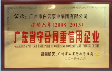 2015年6月25日,经广东省工商行政管理局审核批准,焦点娱乐泵业集团公司再次获得“广东省守合同重信用企业”荣誉证书,这是公司连续七年(2008年-2014年)获得该荣誉。长期以来,公司始终恪守城市守信的经营理念,坚持以诚取信,以信立誉的原则,一直着力于加强信用制度建设,健全管理制度,规范管理行为,依法经营,树