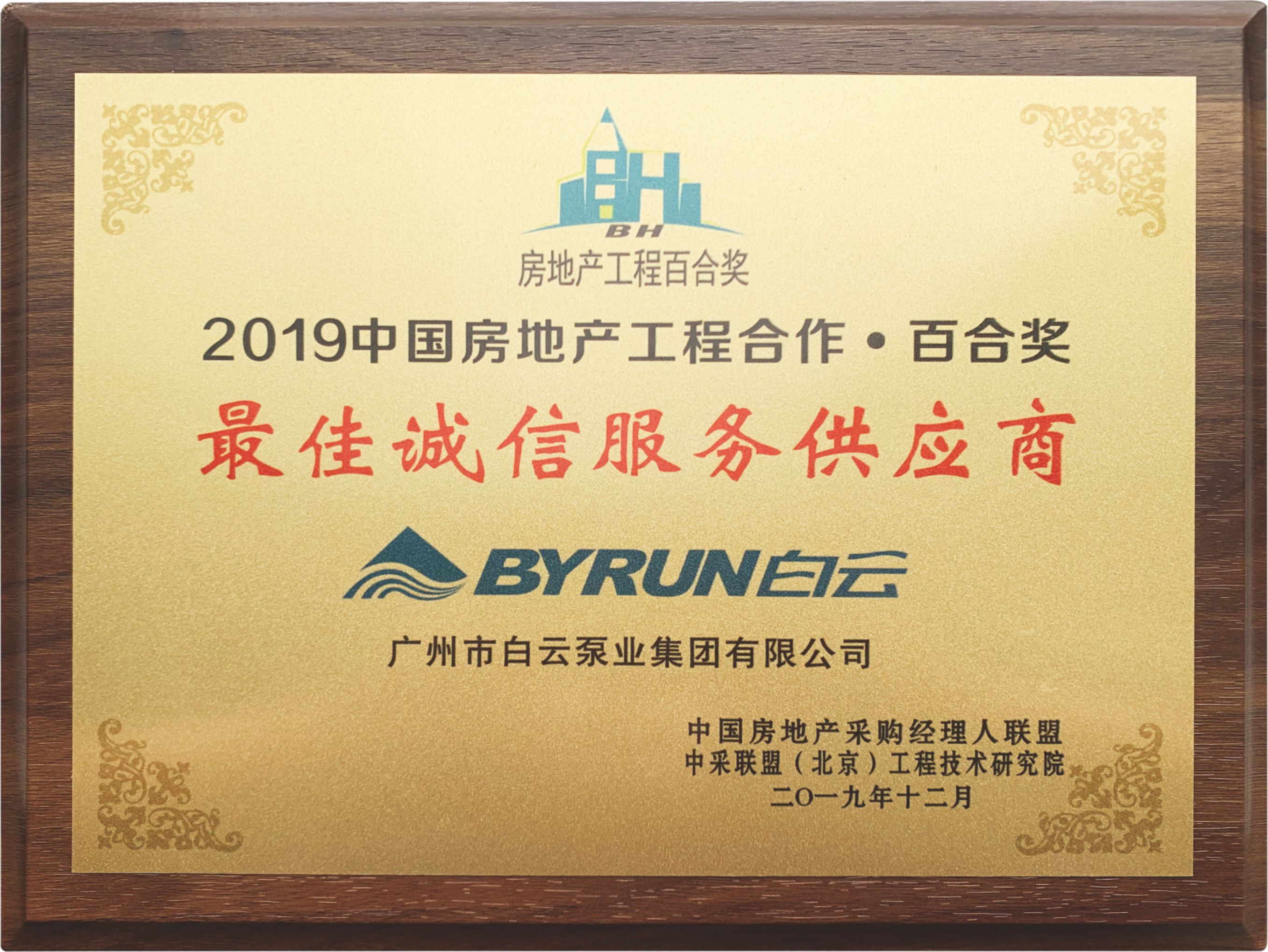 焦点娱乐泵业集团荣获“2019中国房地产工程合作最佳诚信服务供应商”