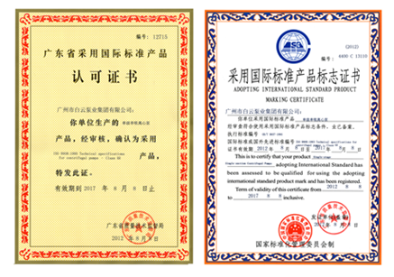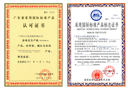 广东省采用国际标准产品认可证书
