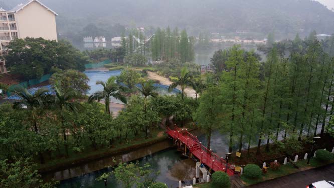 细雨蒙蒙后的山庄烟雾缭绕,山清水秀,空气清新。酒店前面是小桥,流水,杉木;后面是大山,绿树,水库;大家放下行李便成群结队的开始活动,有的爬山,有的去水库,有的泡温泉,有的骑自行车,当然也有麻将爱好者选择在这山水之间享受着小赌怡情的乐趣。