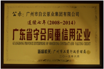 2015年6月25日,经广东省工商行政管理局审核批准,焦点娱乐泵业集团公司再次获得“广东省守合同重信用企业”荣誉证书,这是公司连续七年(2008年-2014年)获得该荣誉。长期以来,公司始终恪守城市守信的经营理念,坚持以诚取信,以信立誉的原则,一直着力于加强信用制度建设,健全管理制度,规范管理行为,依法经营,树