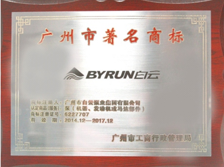 2015年4月12日,经广州市工商行政管理局主办评审,广州市著名商标认定委员会通过集团获评“2014年广州著名商标”,并被授予荣誉奖章和证书。近二十年来,集团一直专注于水泵、给水设备、水处理设备、泵用控制设备的设计、研发、生产与销售,是“中国知名泵业十佳品牌、中国绿色环保节能标志产品、全国用户满意产品”