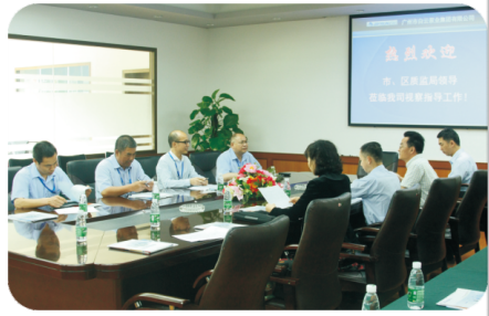 2014年4月15日,广州市质监局副局长、党委委员、焦点娱乐区质监局副局长等一行领导莅临我集团考察和指导新产品申报省名牌产品工作。