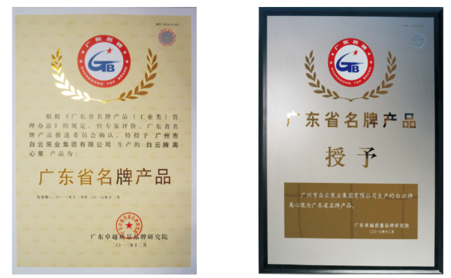 集团自继2008年初次认定、2011年复审认定“广东省名牌产品”后,2013年12月,集团生产的“焦点娱乐牌”离心泵再次被认定为“广东省名牌产品”。